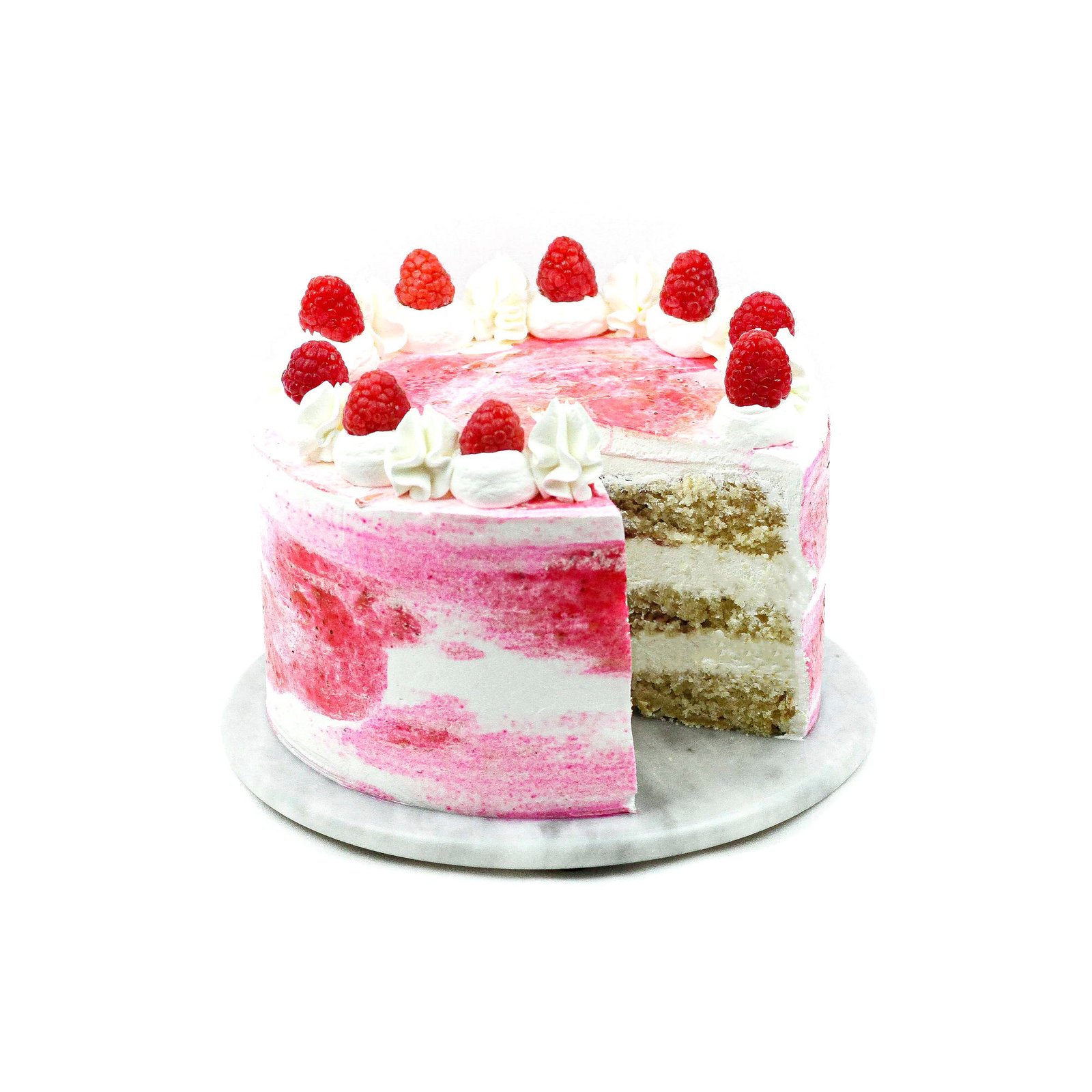 Deléitate con nuestro TARTA DE LIMÓN Y FRAMBUESA, un auténtico clásico entre los pasteles frutales. Esta exquisita creación presenta tres capas de bizcocho de limón, perfectamente complementadas por un relleno de frambuesas frescas y crema de queso. El pastel está elegantemente cubierto con de limón con remolinos de frambuesa y decorado con un glaseado de frambuesa y frambuesas frescas, ofreciendo una explosión de sabor afrutado en cada bocado.