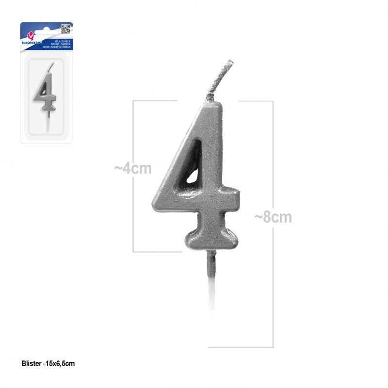 Nuestra vela plateada de cumpleaños con el número 4 es el complemento perfecto para coronar cualquier tarta, pastel o postre de celebración. Con un diseño alegre y festivo, es ideal tanto para fiestas infantiles como para aniversarios de adultos.